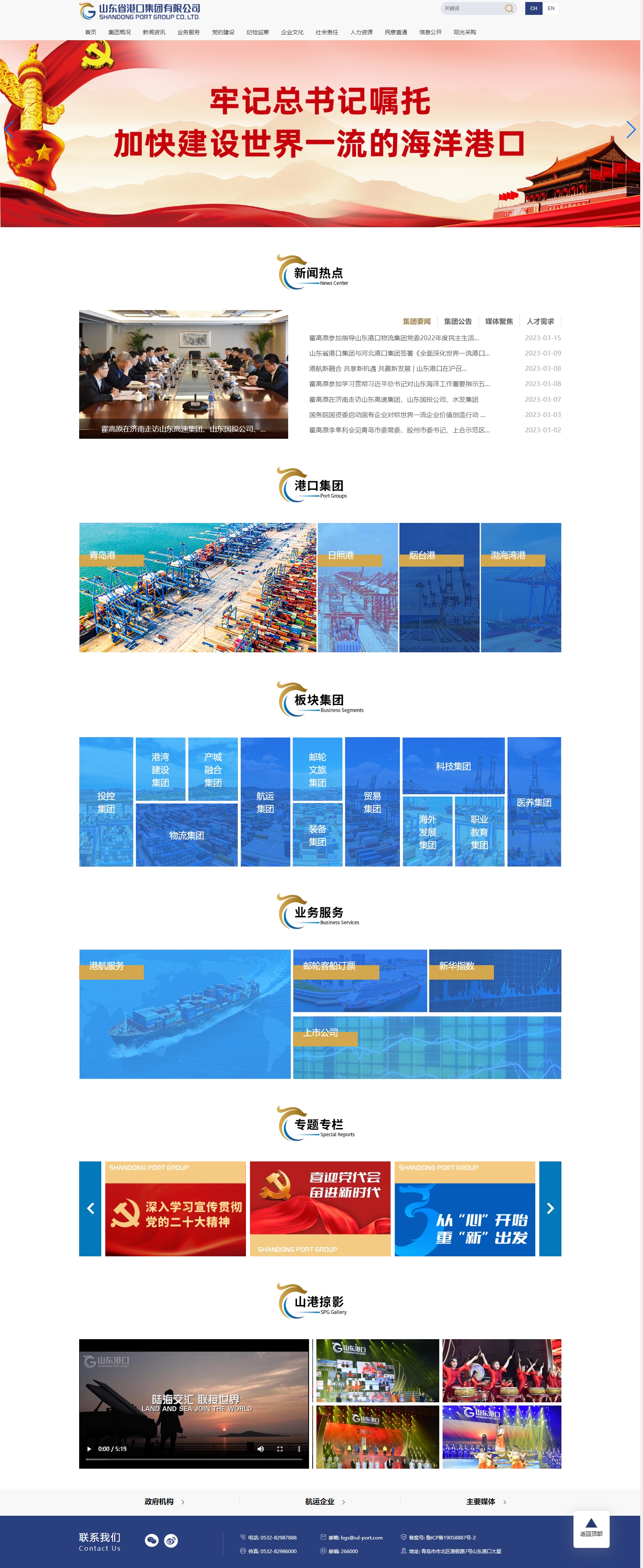 山东省港口集团有限公司是省属国有重要骨干企业,成立于2019年8月6日,总部位于山东青岛。拥有青岛港集团、日照港集团、烟台港集团、渤海湾港集团四大港口集团,青岛港(601298.SH,06198.HK)、日照港(600017.SH)、日照港裕廊(6117.HK)三家上市公司,投控、港湾建设、产城融合、物流、航运、邮轮文旅、装备、贸易、科技、海外发展、职教、医养等十二个板块集团。目前,形成了“以青岛港为龙头,日照港、烟台港为两翼,渤海湾港为延展,各板块集团为支撑,众多内陆港为依托”的一体化协同发展格局,共有21个主要港区、360余个生产性泊位、320余条集装箱航线。